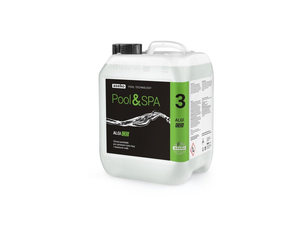 ALGICID je ideální pro použití v bazénech a lázních. Jeho silný a dlouhotrvající