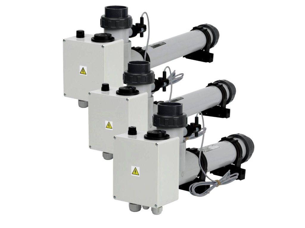 Bazénové elektrické průtokové ohřívače vody jsou svou konstrukcí speciálně navrženy pro vytápění bazénové vody, nebo vody v jiných vodních okruzích s průtokem a teplotou do 40°C. Každý ohřívač musí být v elektrické soustavě nainstalován za proudovým chráničem. Doporučujeme tedy zařízení doplnit vhodným typem automatického ovládání, které spolehlivě zajistí nejen požadovanou komfortnost, ale i bezpečnost obsluhy.