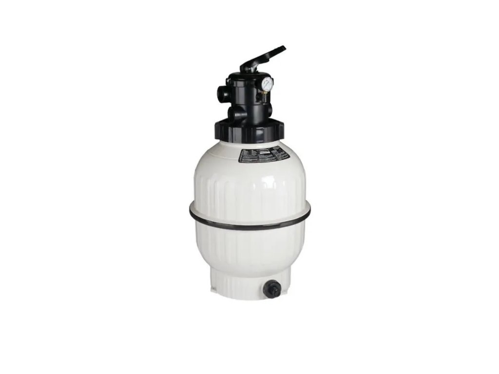 Plastový filtr barvy slonové kosti. Horní a dolní část filtru je polyfůzně svařena, čímž je zaručena maximální tlaková odolnost. Součástí dodávky je také manometr, vypouštěcí a odvzdušňovací ventilek. Doporučená filtrační rychlost je 50m3/h/m3.