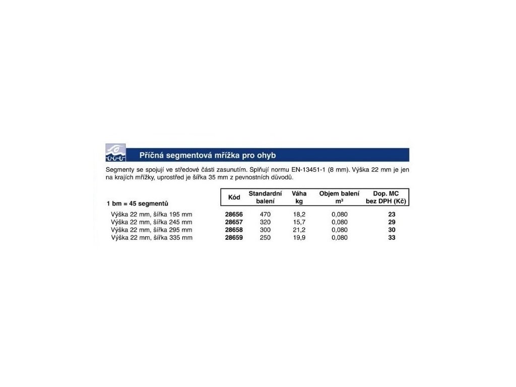 Příčná segmentová mřížka pro ohyb, výška 22mm, šířka 335mm