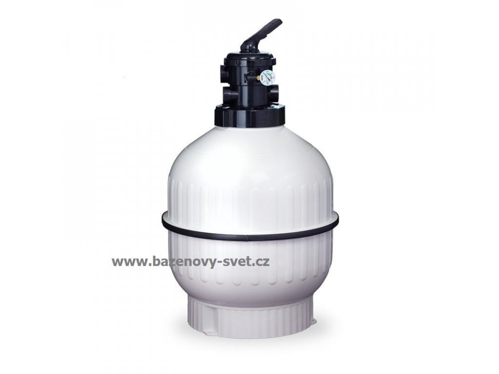 Plastový filtr barvy slonové kosti. Horní a dolní část filtru je polyfůzně svařena, čímž je zaručena maximální tlaková odolnost. Součástí dodávky je také manometr, vypouštěcí a odvzdušňovací ventilek. Doporučená filtrační rychlost je 50m3/h/m3. Písková filtrační náplň není součástí dodávky!