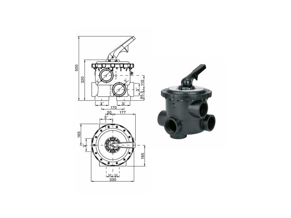 Ovládací ventil Magnum 3", pro boční připojení k filtru