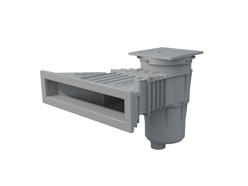 Skimmer pro betonové, prefabrikované i foliové bazény, vnitřní rozměr rámečku 495x80mm, světle šedé barevné provedení.